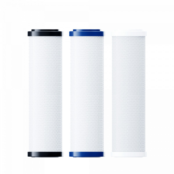 • Комплект сменных модулей глубокой очистки. Оптимален для мягкой воды. В условиях жесткой воды он полностью выполняет функцию глубокой очистки от вредных примесей, однако не снижает минерализацию. Поэтому, если при кипячении на нагревательных элементах образуется белый налет, рекомендуем рассмотреть специализированный комплект с умягчающим модулем для глубокой очистки воды.